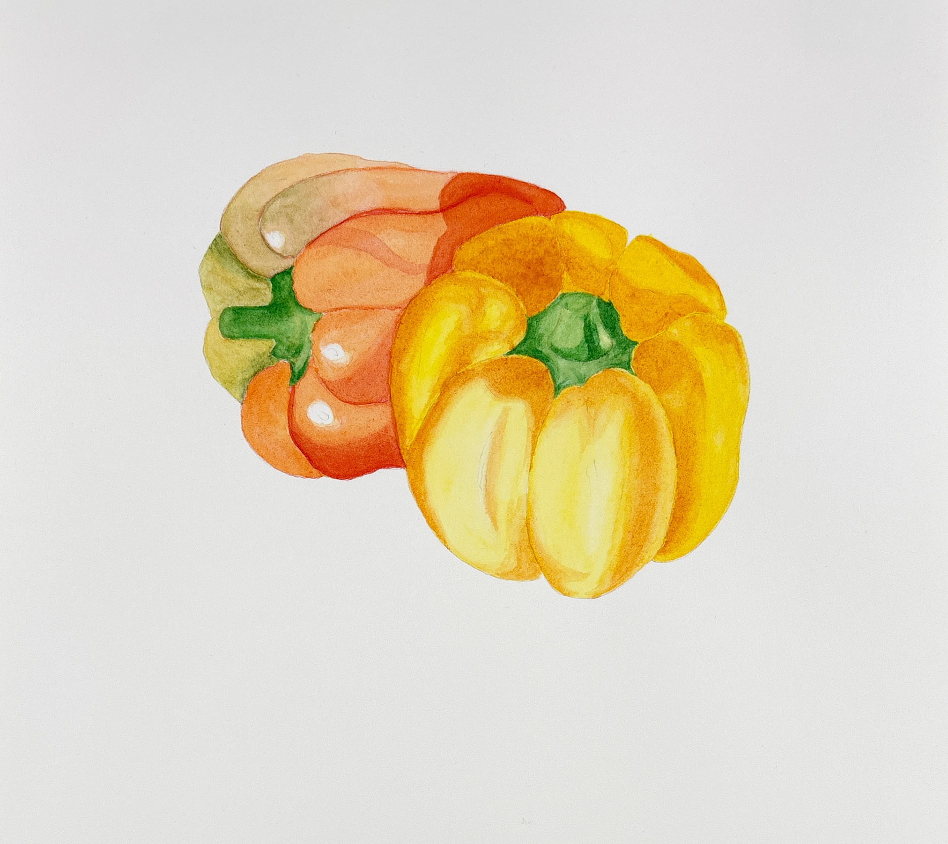 Peppers, watercolor, 4 x 4.5 inches, 2005