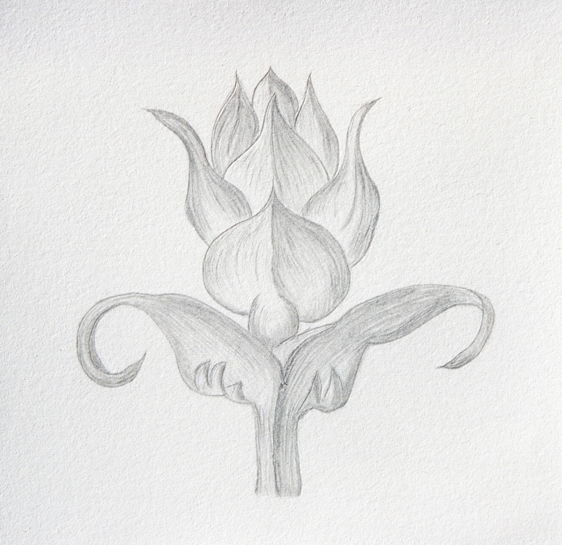 Fleurs Sacrées III, graphite, 8 x 8 inches, 1991. Private collection.