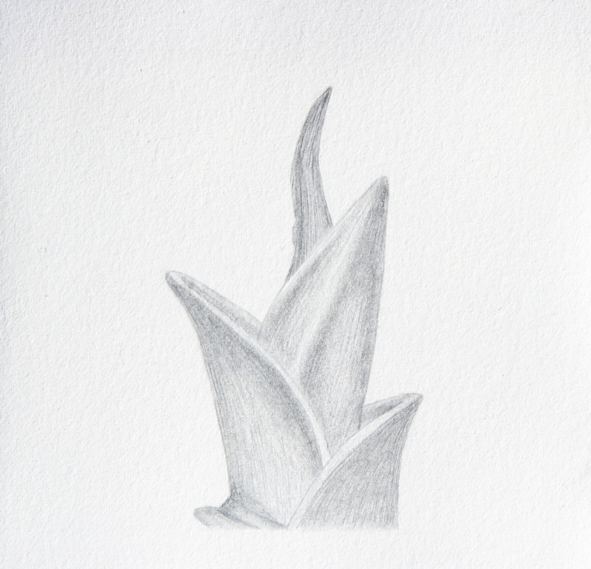 Narrow Leaved Plaintain Lily, silverpoint on gessoed paper, 3 x 3 inches, 1996. Private collection.