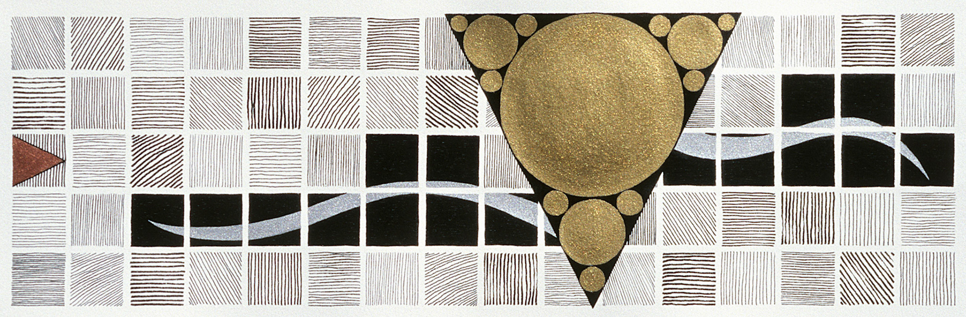 Apollo's Delight, pen and ink and metallic ink, 5 x 18 inches, 1997. Private collection.