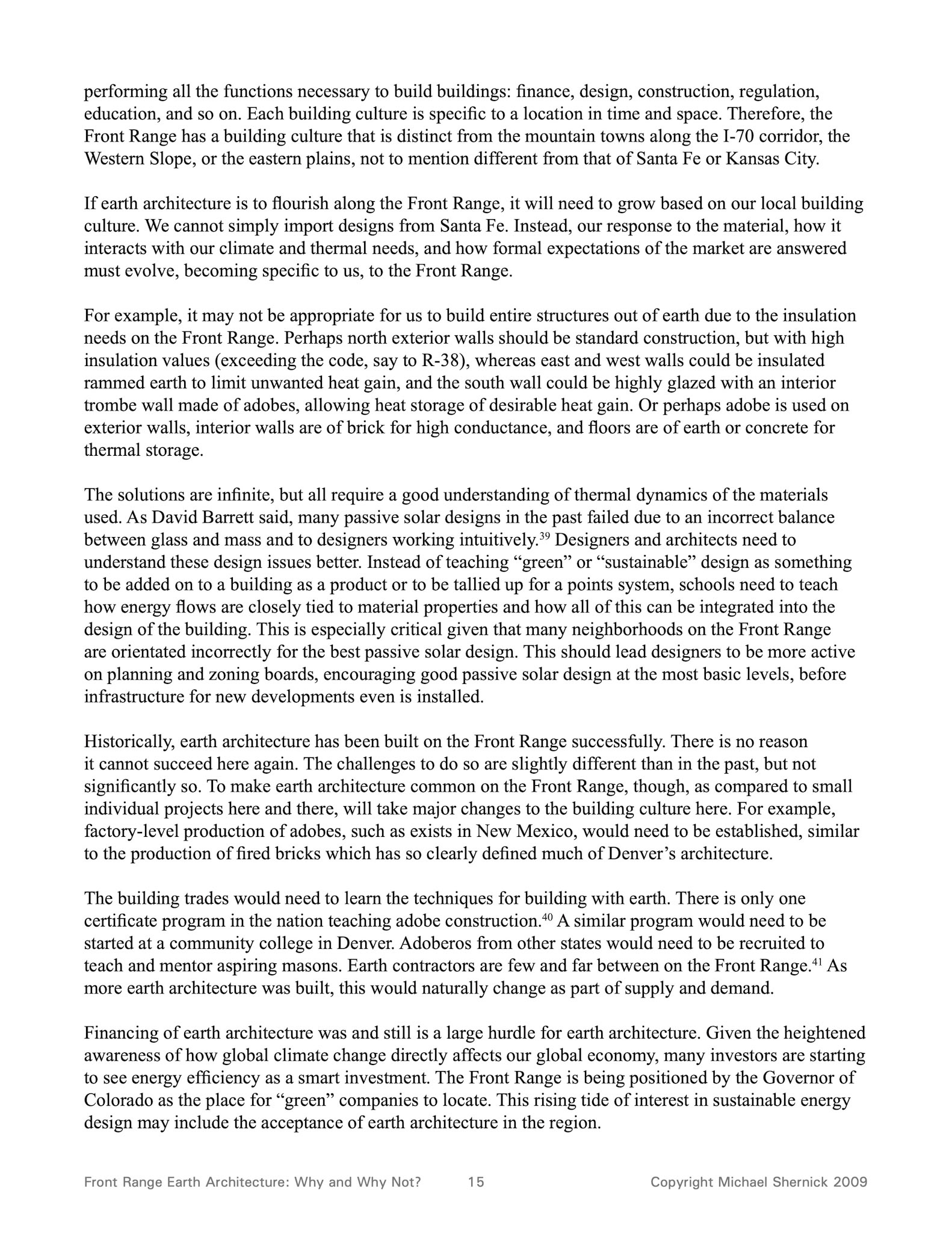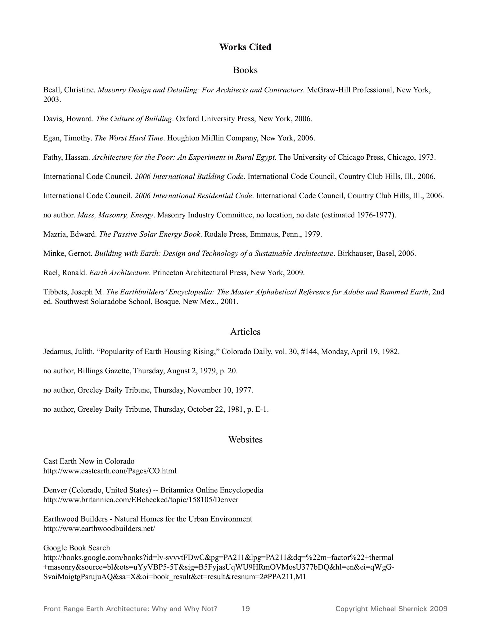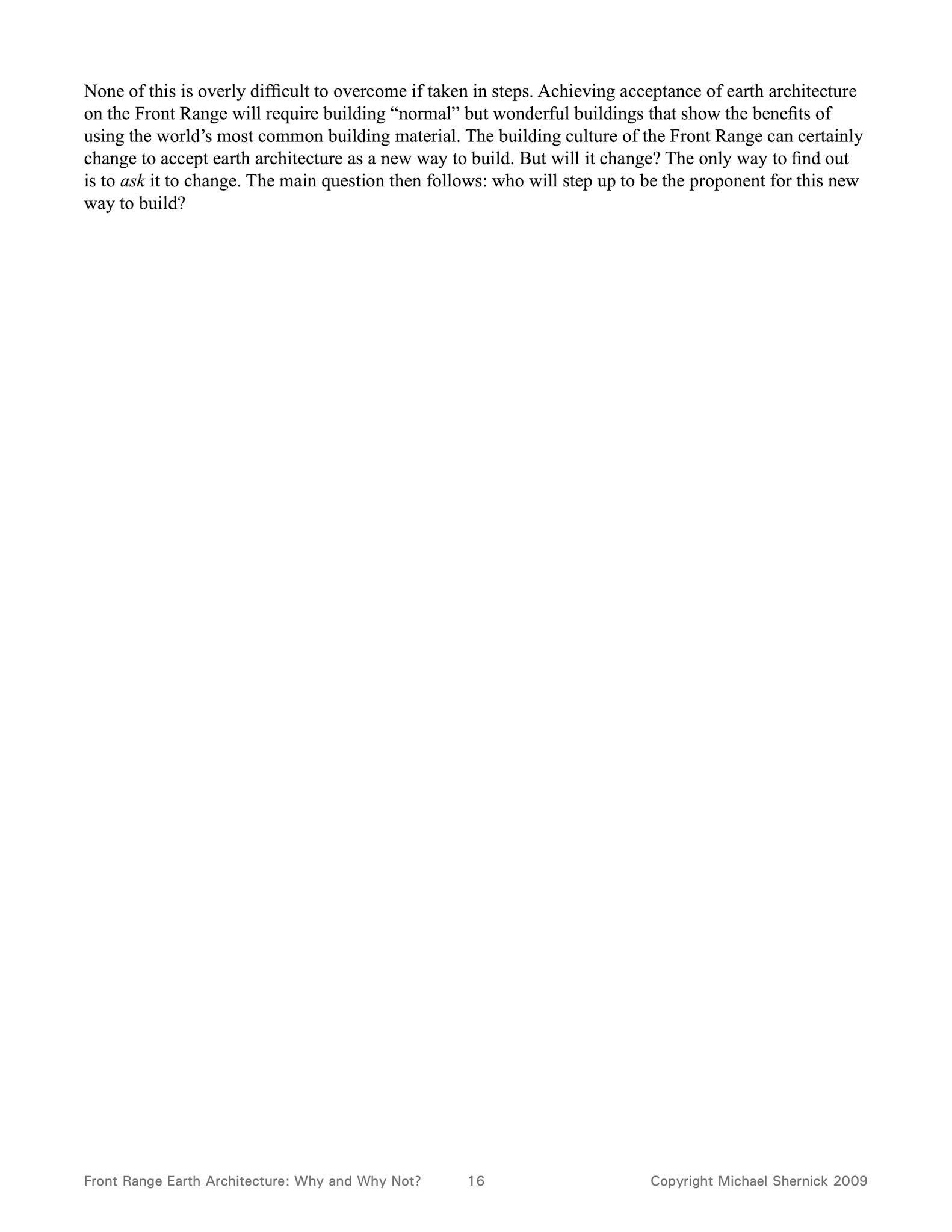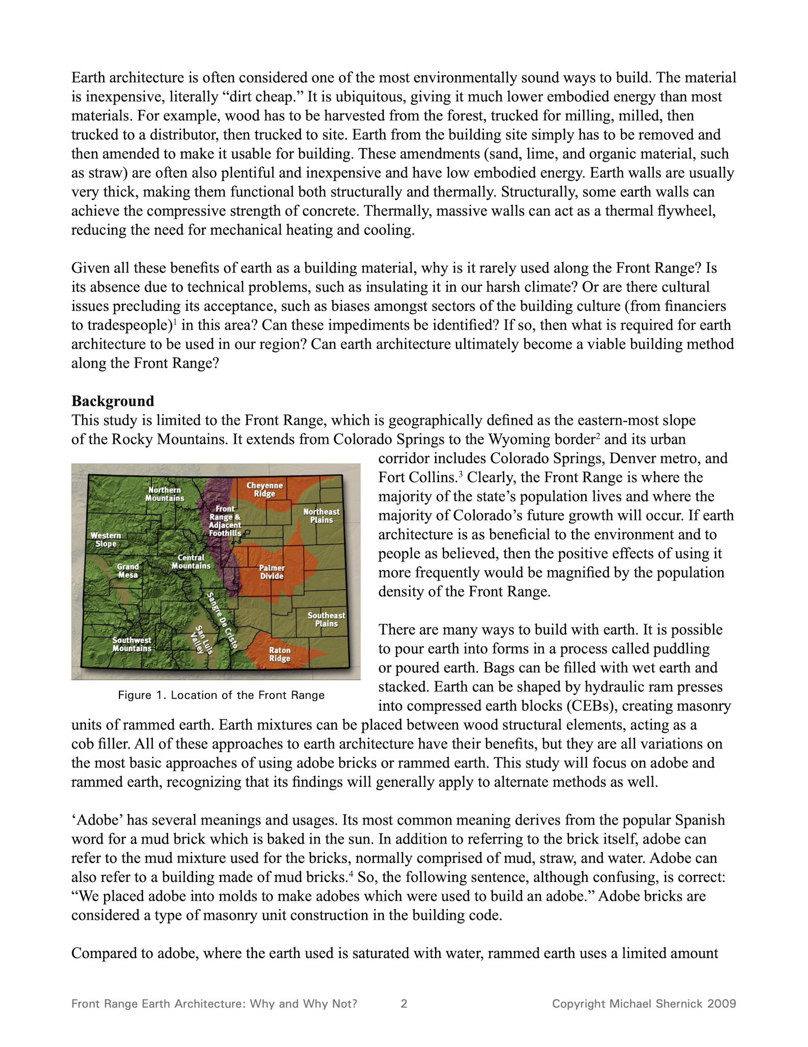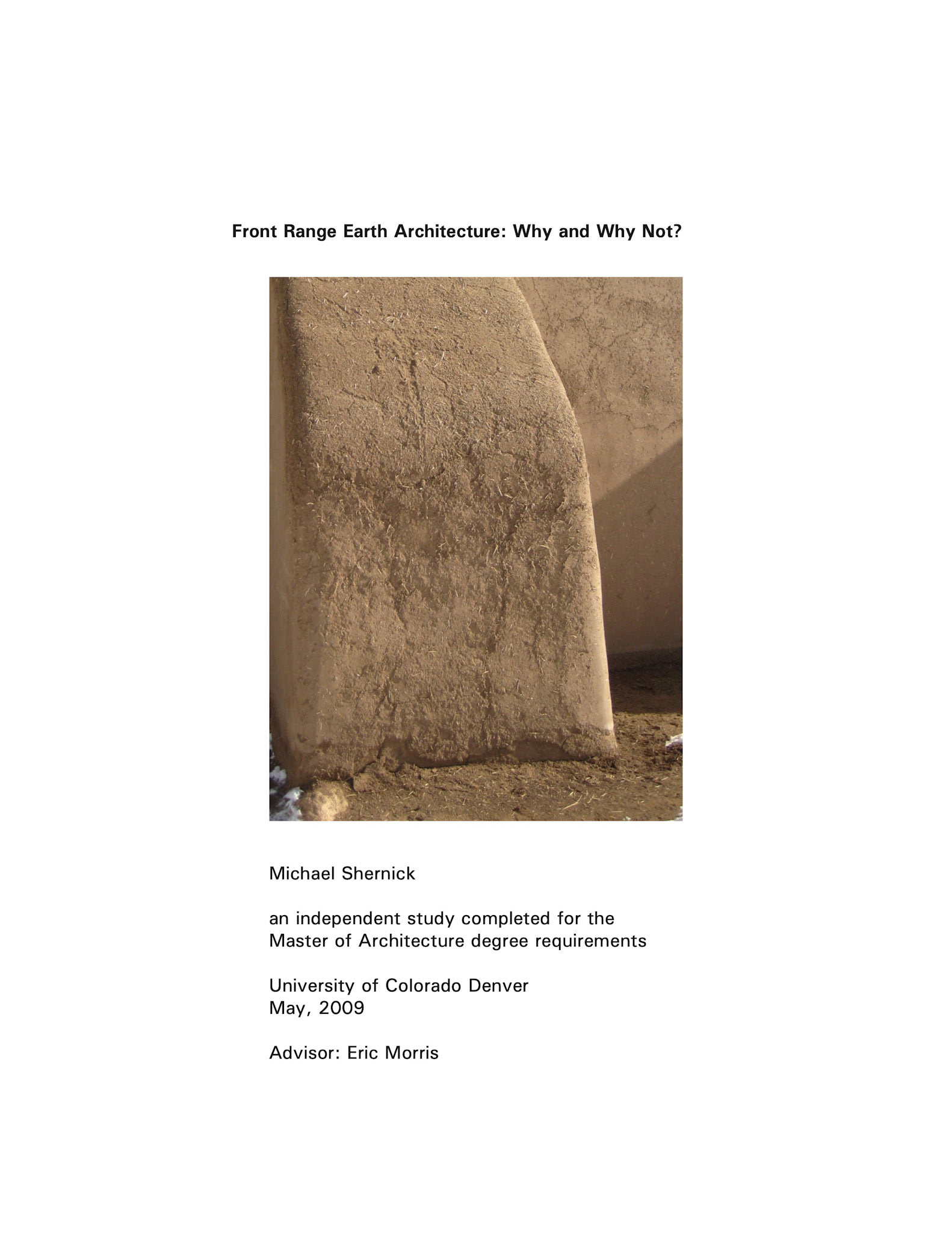 This was for an independent study I completed for my M.Arch degree looking at the history of earth architecture on the Front Range and what are the factors that drive its use, or lack thereof, as a building material in this region.