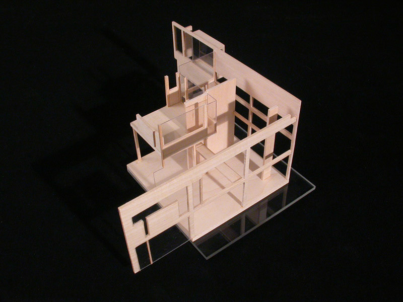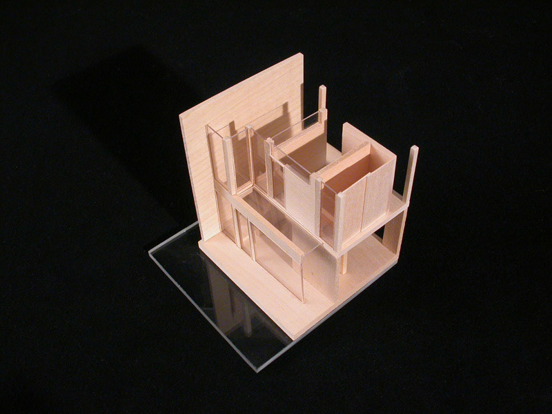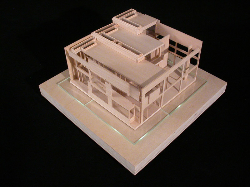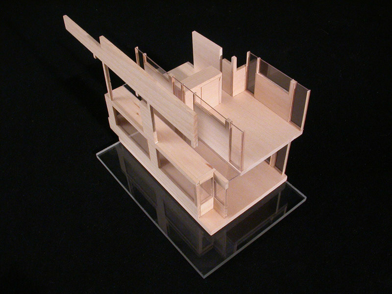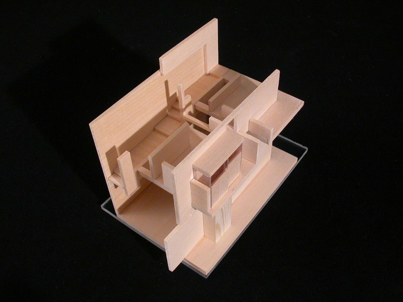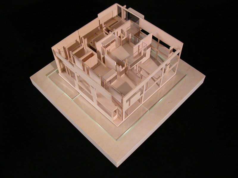Full model. Note the plexiglas bases for each slice which are illuminated by LEDs in the wood base, representing House Two's deconstructivist conceptual separation from its site