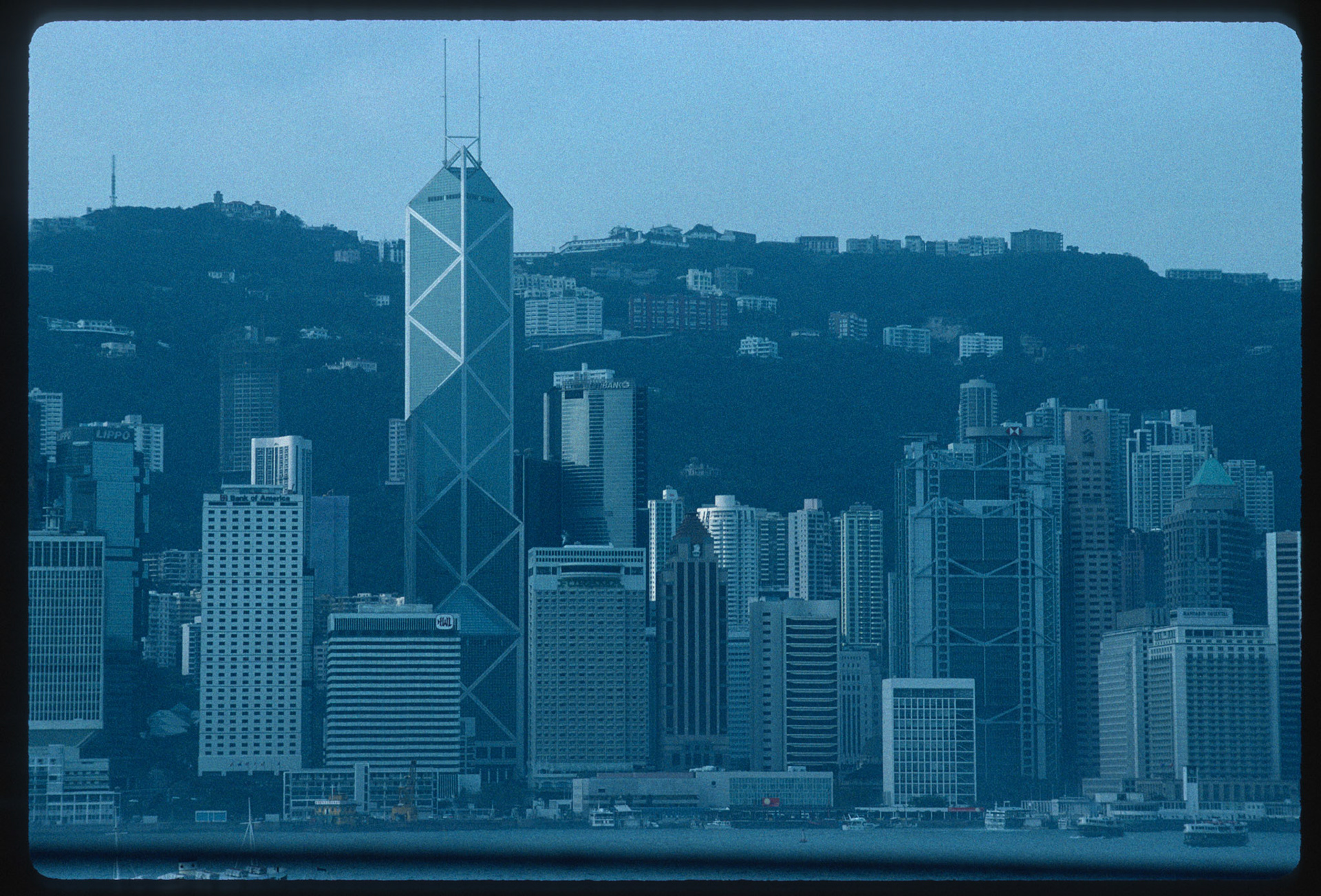 Hong Kong skyline, 1995; Bank of China by IM Pei and HSBC headquarters by Norman Foster