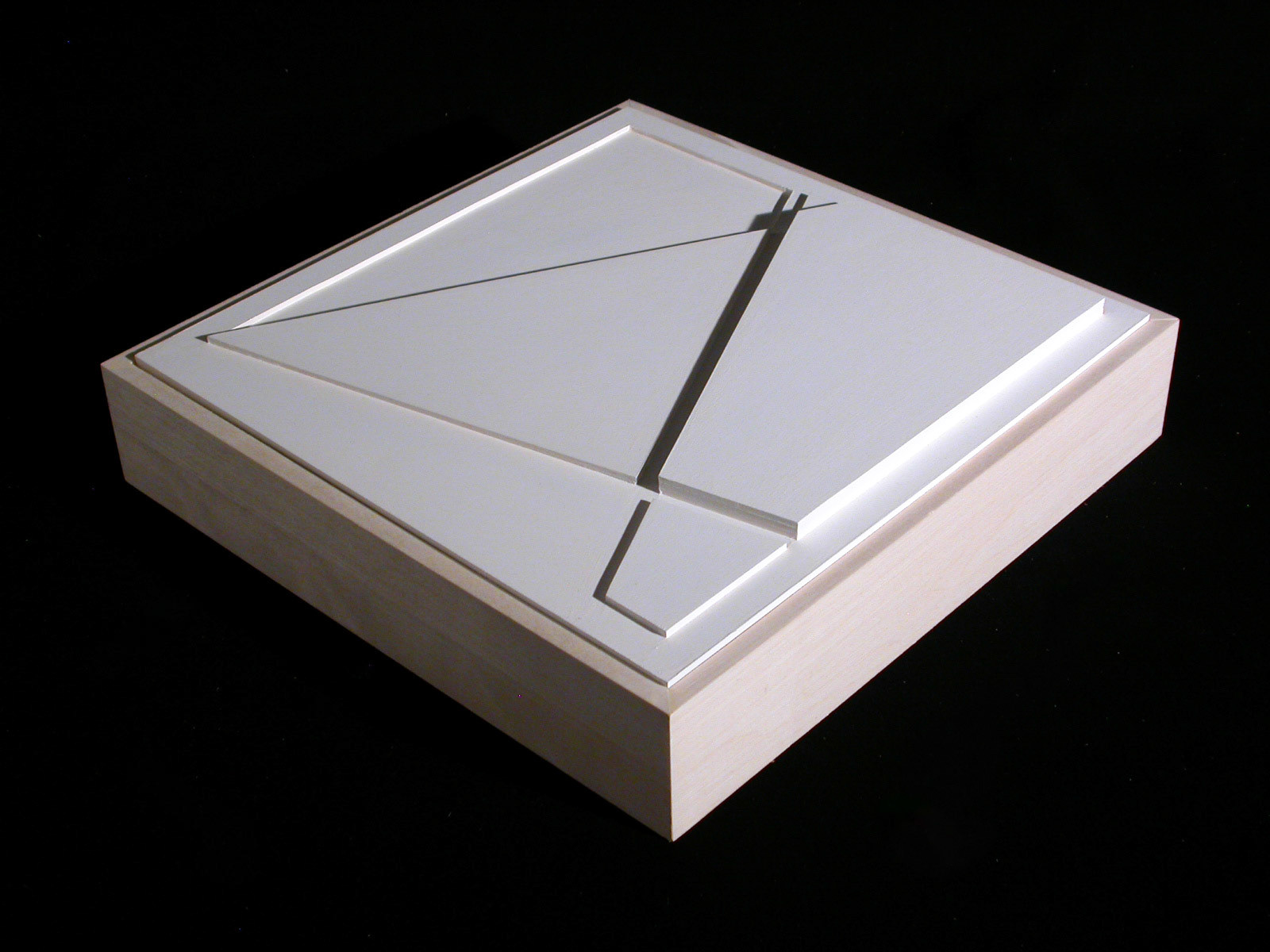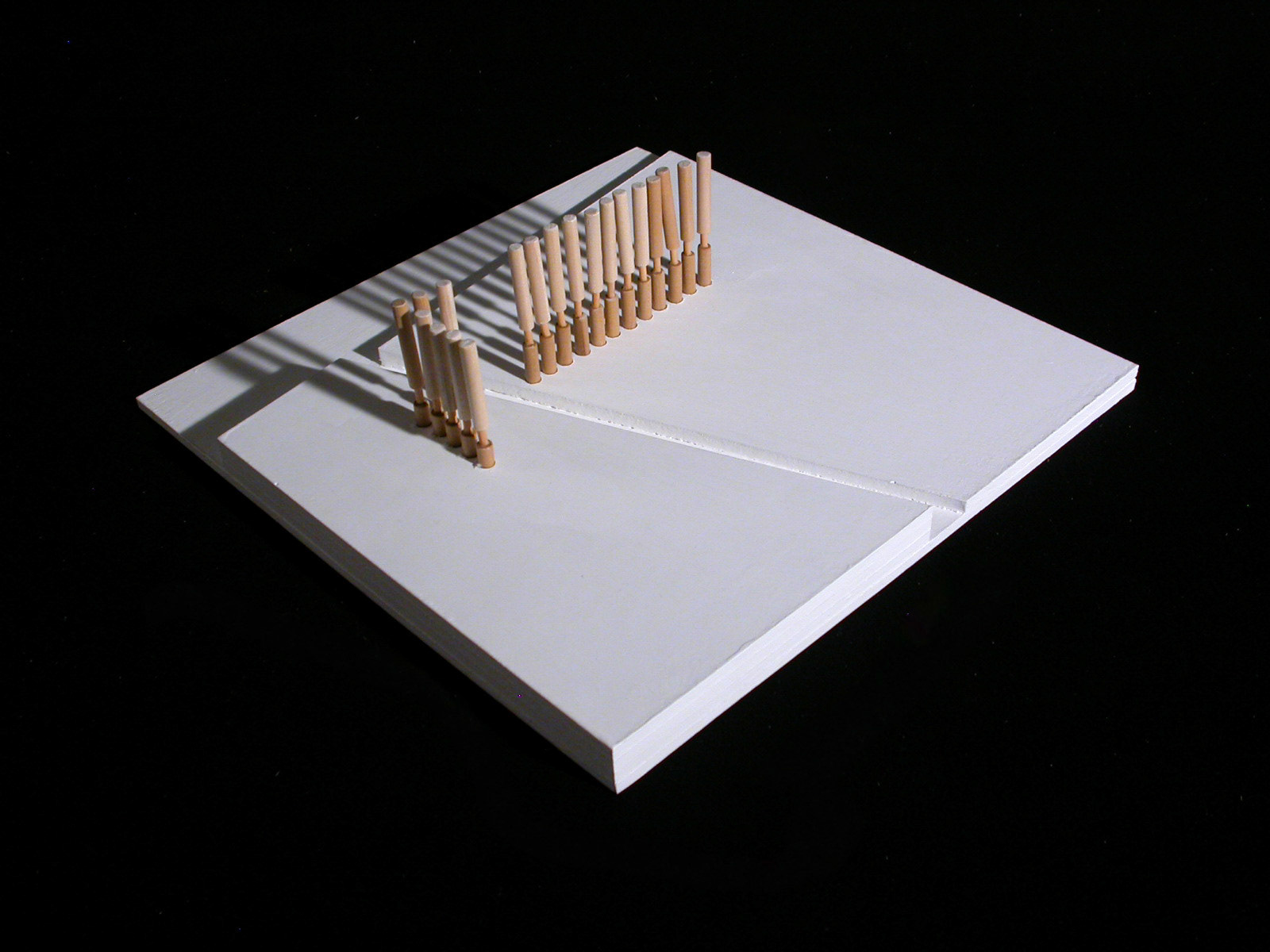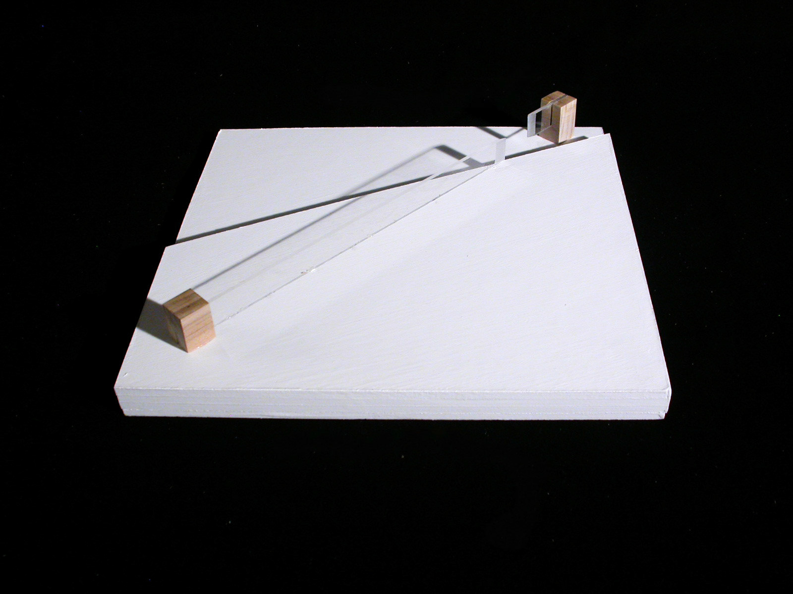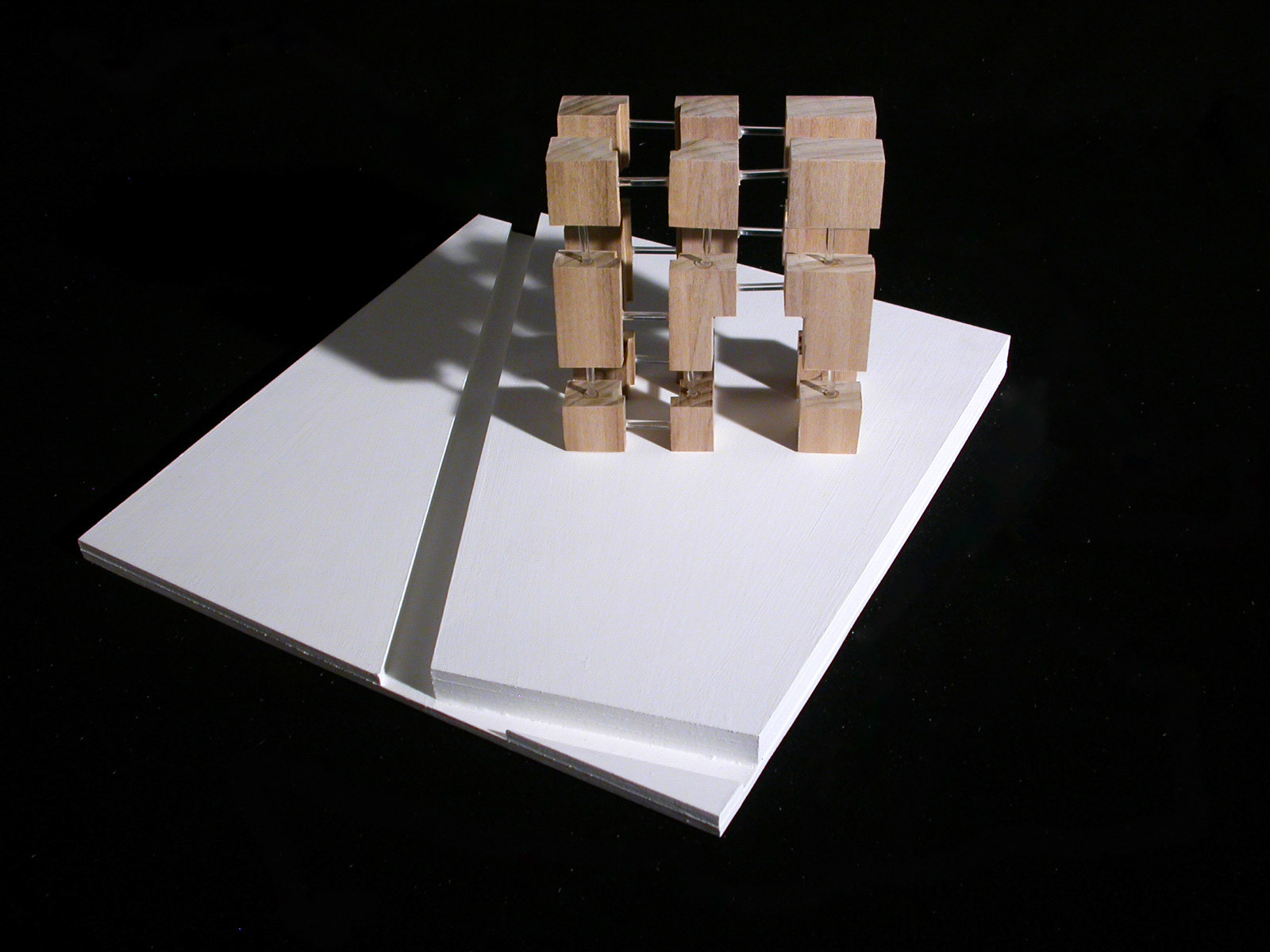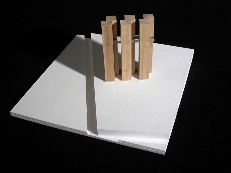 As part of the Tea House project, we had to build a site model, then make 10 models in 10 days of tea house concepts, each expressing one of Le Corbusier's five elements of architecture and at least one design approach, such as subtraction. Each model had to be on a white gessoed base and could use wood and plexiglas.