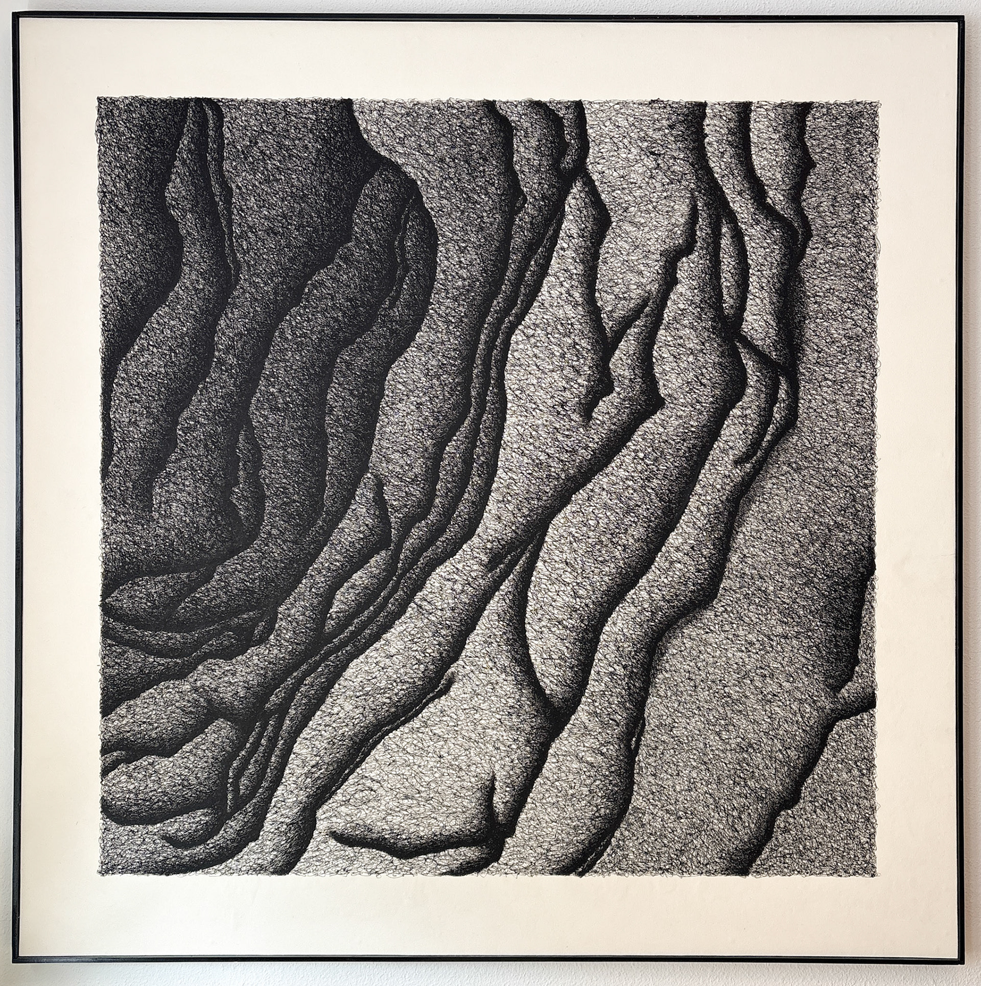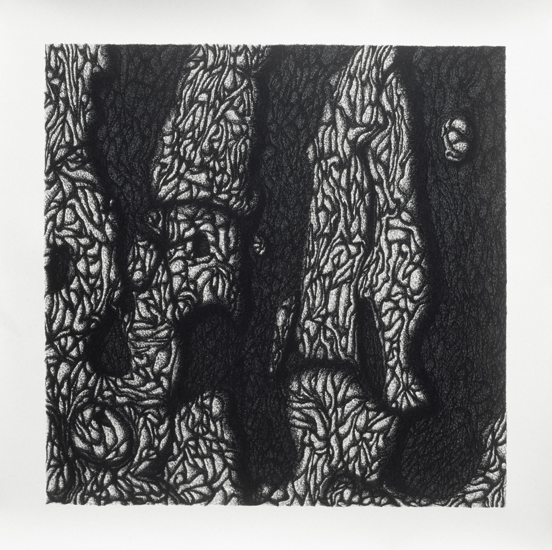 Erosion, pen and ink on paper mounted to panel, 48 x 48 inches, 1993. Private collection.